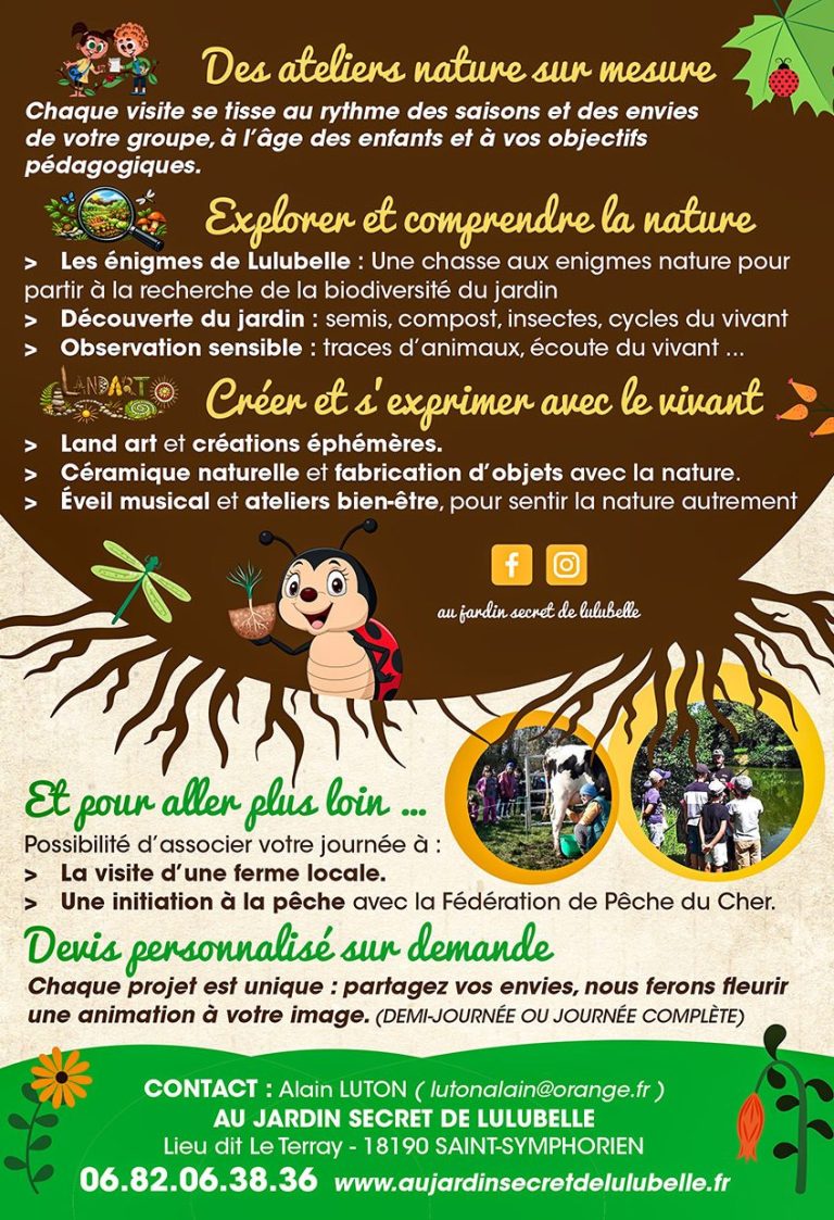 Nous vous proposons d’organiser une sortie scolaire au Jardin Secret de Lulubelle, de fin avril à début juillet.